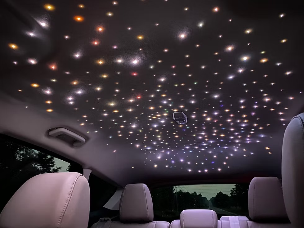 Designed to mimic a starlit night sky, this roof lighting feature uses fiber optic or LED technology to create a sparkling, luxurious ambiance inside your vehicle. Whether you’re driving at night or showing off your ride, the star roof gives your car an ultra-premium feel like high-end luxury brands.